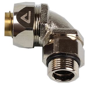 ISO 90° Drehbare Verschraubung, Aussengewinde, Messing-vernickelt (einschl. Einschraubset)