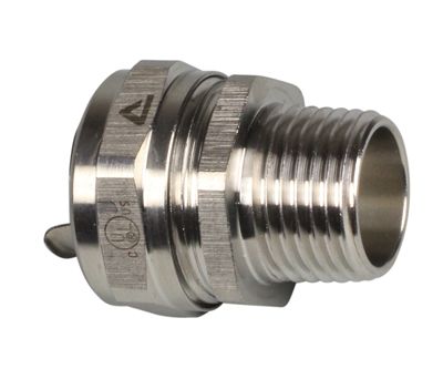 Stainless steel AISI-316, consisting of 4 parts (counter nut, clamping ring, ferrule and body). Special approvals: UL-514B and CSA C 22.2 (combined UL / CSA (CUL) file # E 234207). Suitable for use in hazardous environments according NEC: - Article 501.10 (B) (2). Class I, Division 2. - Article 502.10 (A) (2) and (B) (2). Class II, Division 1 and 2. - Article 503.10 (A) (3) and (B) Class III, Division 1 and 2